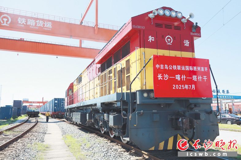 7月2日10时36分,长沙首趟“中吉乌”公铁联运国际班列驶出国际铁路港。