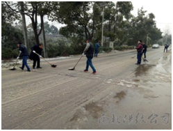 北横线宁乡大道北延段项目人员清除冰雪现场