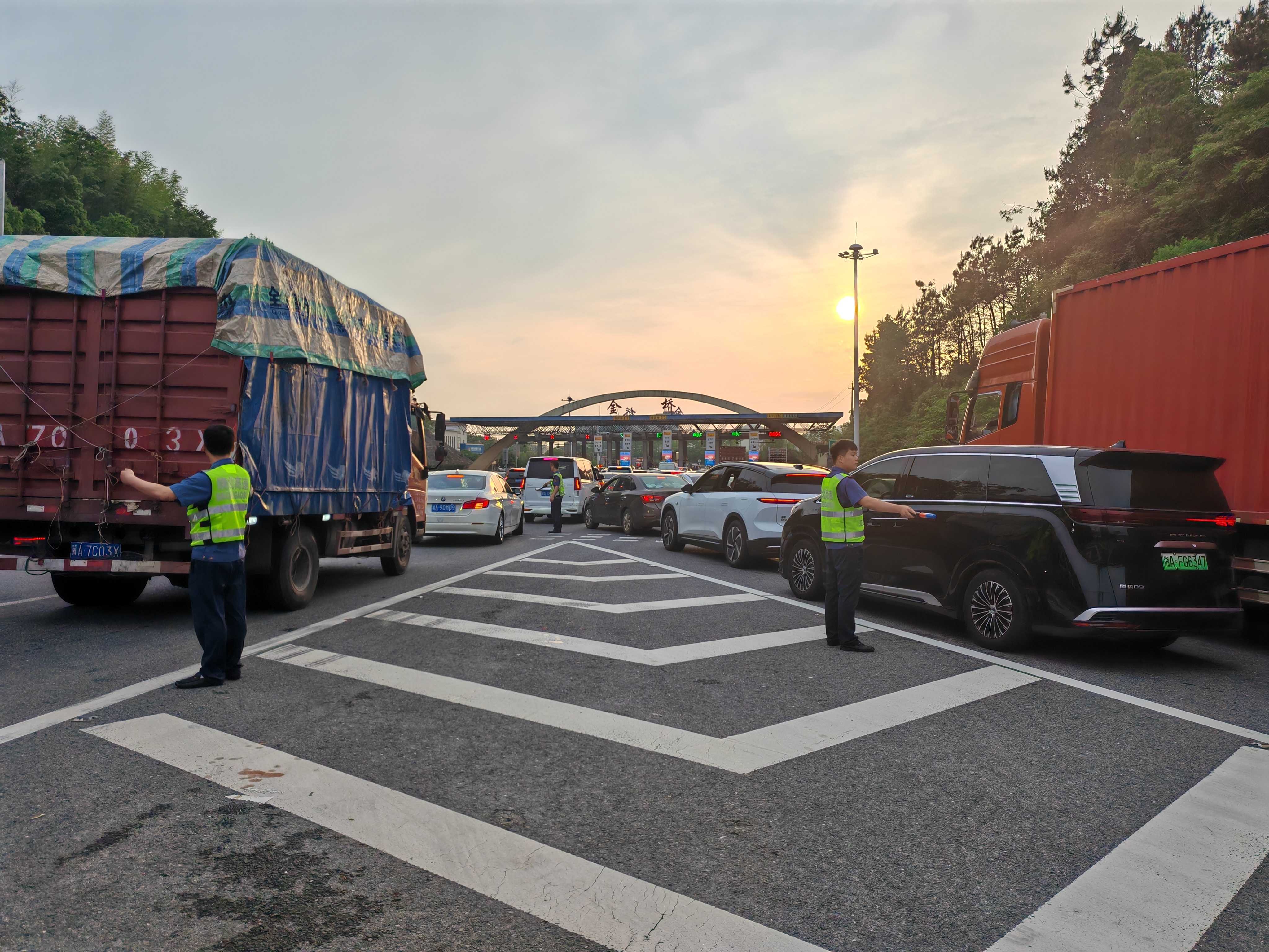为有效应对车流高峰,机场路分公司、深长公司科学分析车流规律,制定专项保畅方案与应急预案,严格落实24小时值班制度。机场路公司收费员始终以饱满热情服务过往司乘,面对车辆故障、出行咨询等需求,第一时间主动响应、贴心服务。同时,各职能部门与交警、救援、养护等单位建立高效联动机制,通过精准调度、科学分流,实现车流的高效管控与快速疏导。深长公司采取“人巡+技巡”双线联动模式,监控应急调度中心保持24小时视频滚动巡查,工作人员对全线道路设备设施全面检查维护,确保突发情况能快速响应、高效处置。