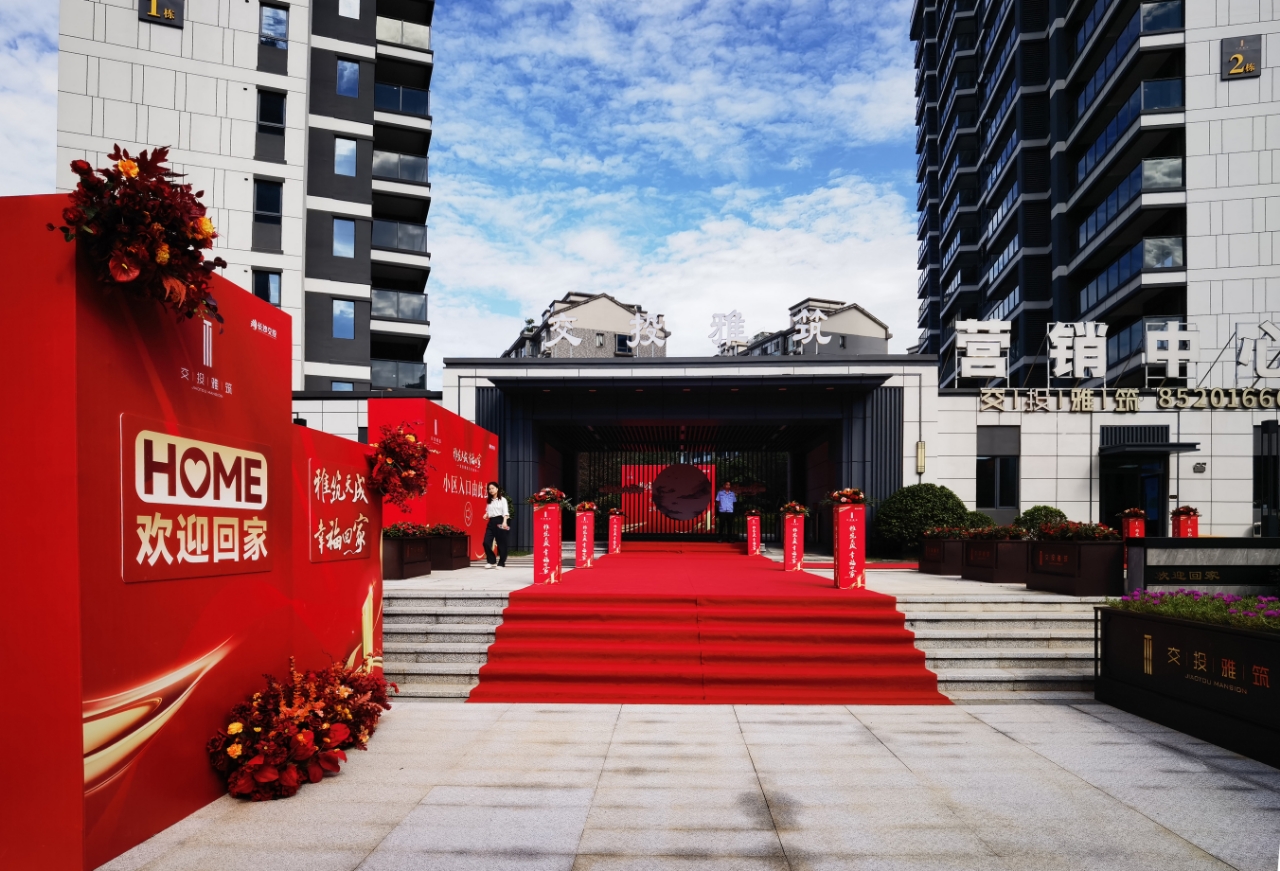 精心布置的红毯、色彩斑斓的鲜花、暖心的欢迎标语……交付当天,小区内外洋溢着温馨喜庆的氛围,对业主归家表示诚挚欢迎。